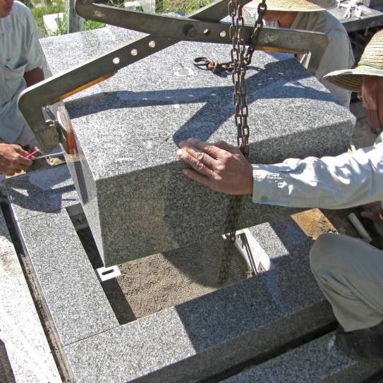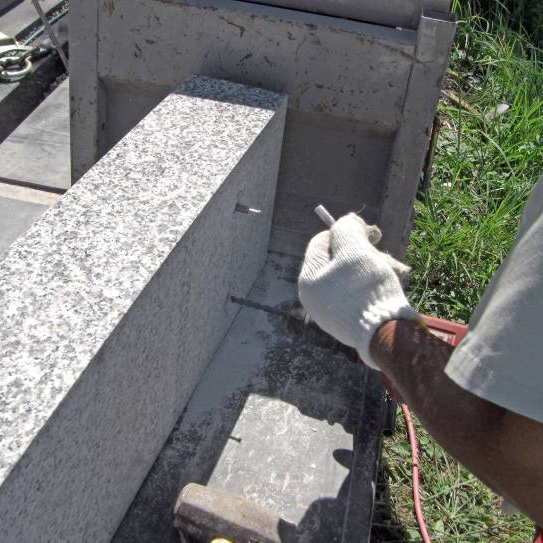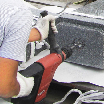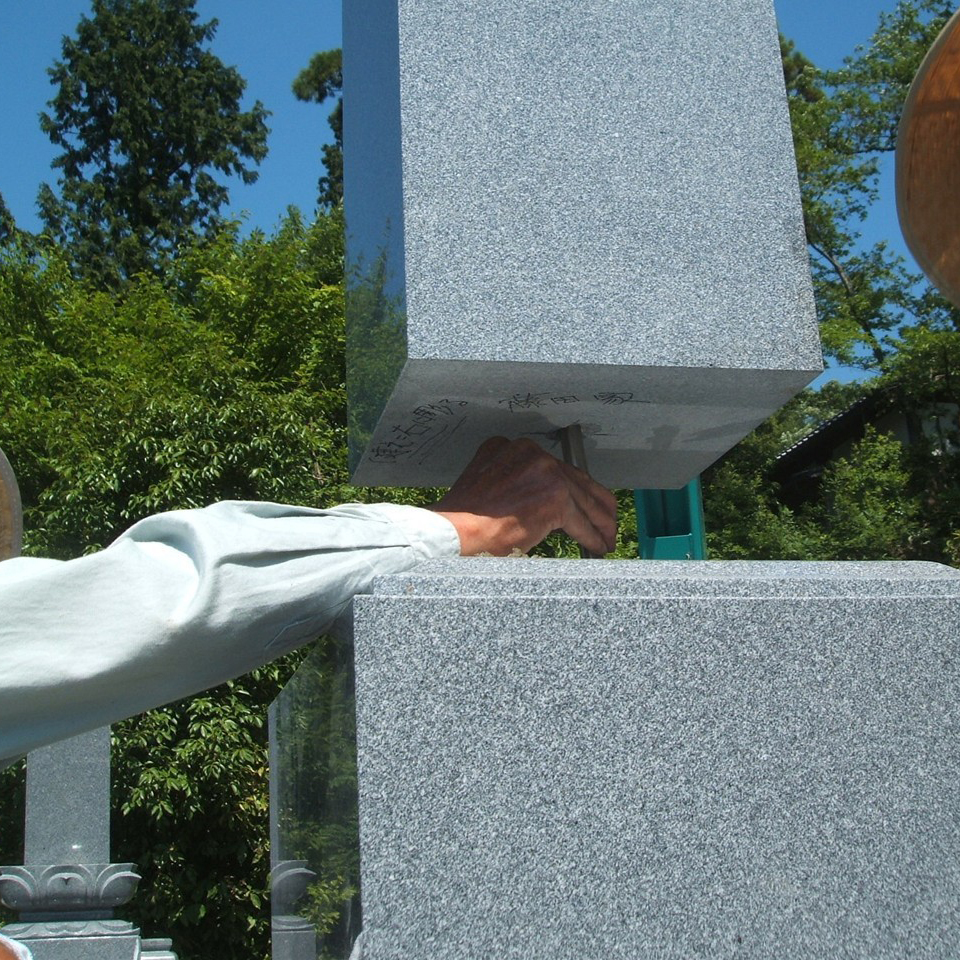 その2 弊社はお墓以外にも建築石材、丸柱、記念碑などを受注加工している自社工場を持ち、 お墓の契約から完成まで自社で責任を持って施工しています!施工後も安心です!