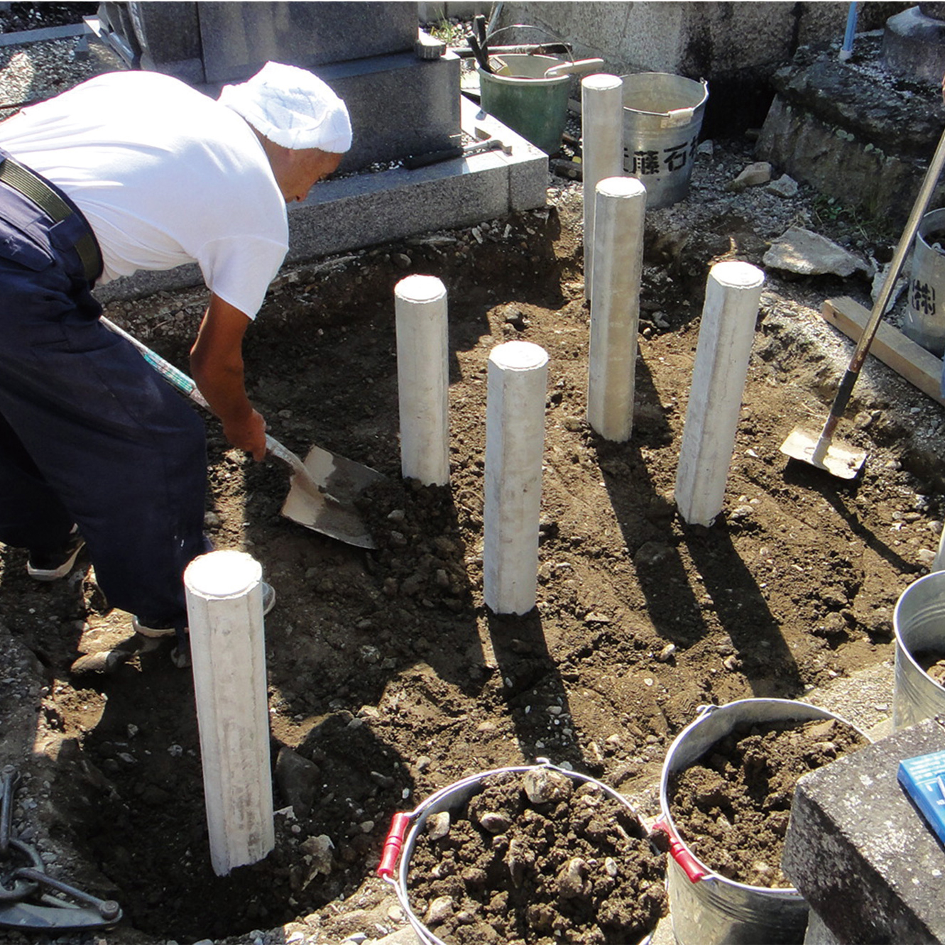 その1 お墓の建築には基準法がないので、建て方が様々!丈夫さは石材店の技量により大きく 差が出ます。近藤石材は住宅の建築基準法に基づいた独自の耐震施工を行っています!
